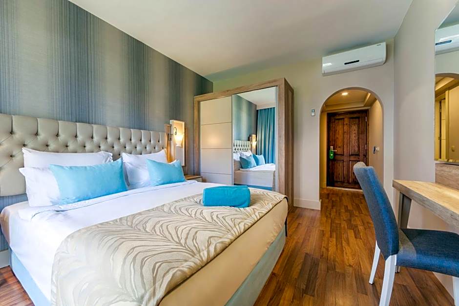 Immerse yourself in the lush surroundings and enjoy facilities such as a tennis court, kids' club, and live music performances. For those traveling with children, the resort offers kid-friendly buffets, complimentary kids' meals, and a dedicated kids' pool. The TUI MAGIC LIFE Masmavi is equipped with everything you need for a perfect vacation – from free WiFi and 24-hour front desk service to free toiletries and room service. Additionally, the hotel provides convenient airport shuttle services for an extra charge, making your arrival and departure hassle-free. Don't miss out on this stunning resort offering the best of Turkish hospitality and luxury.